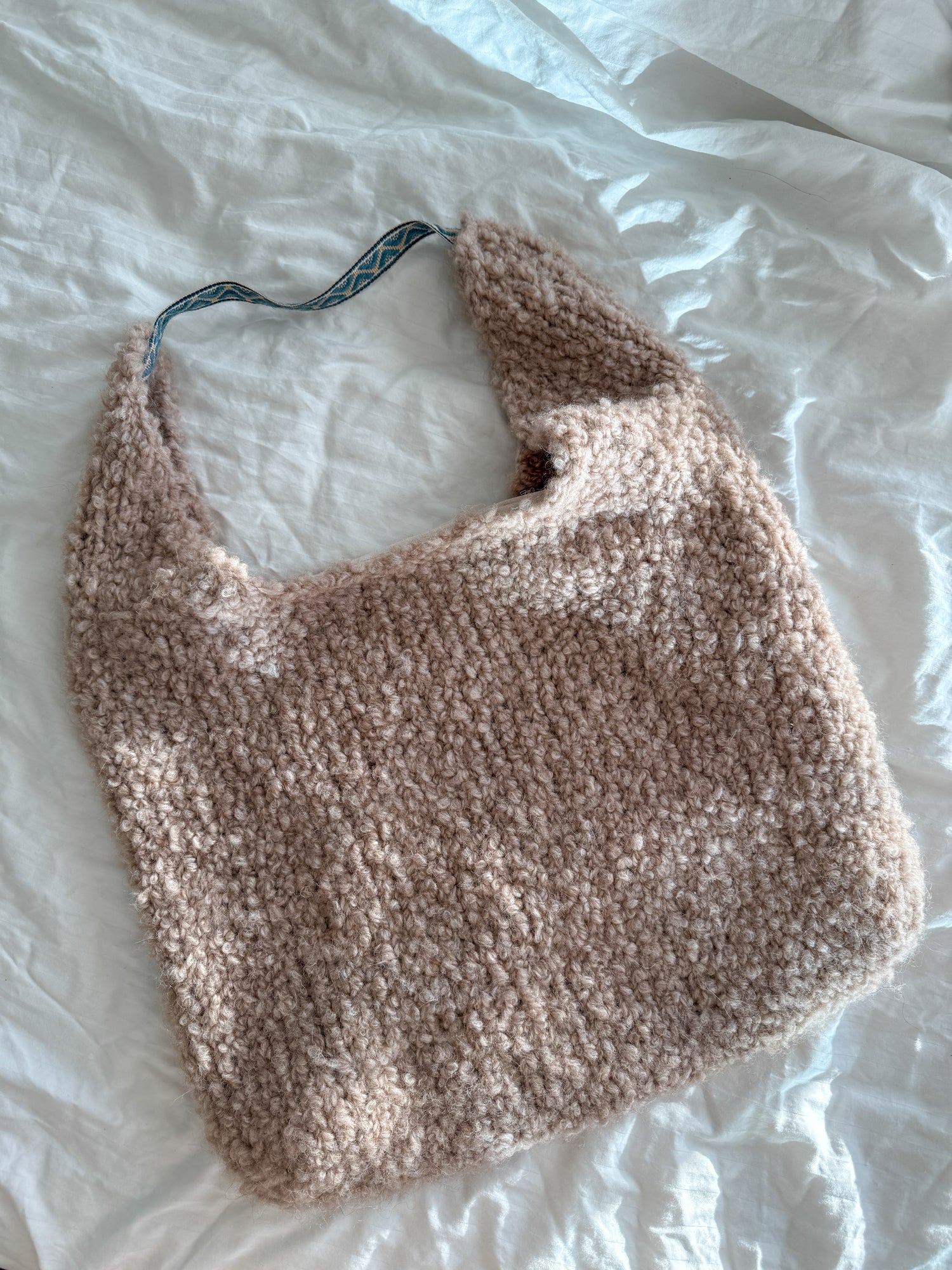 A knitted bag in Teddy yarn delivers a modern, fluffy winter statement that makes any outfit stylish yet relaxed.